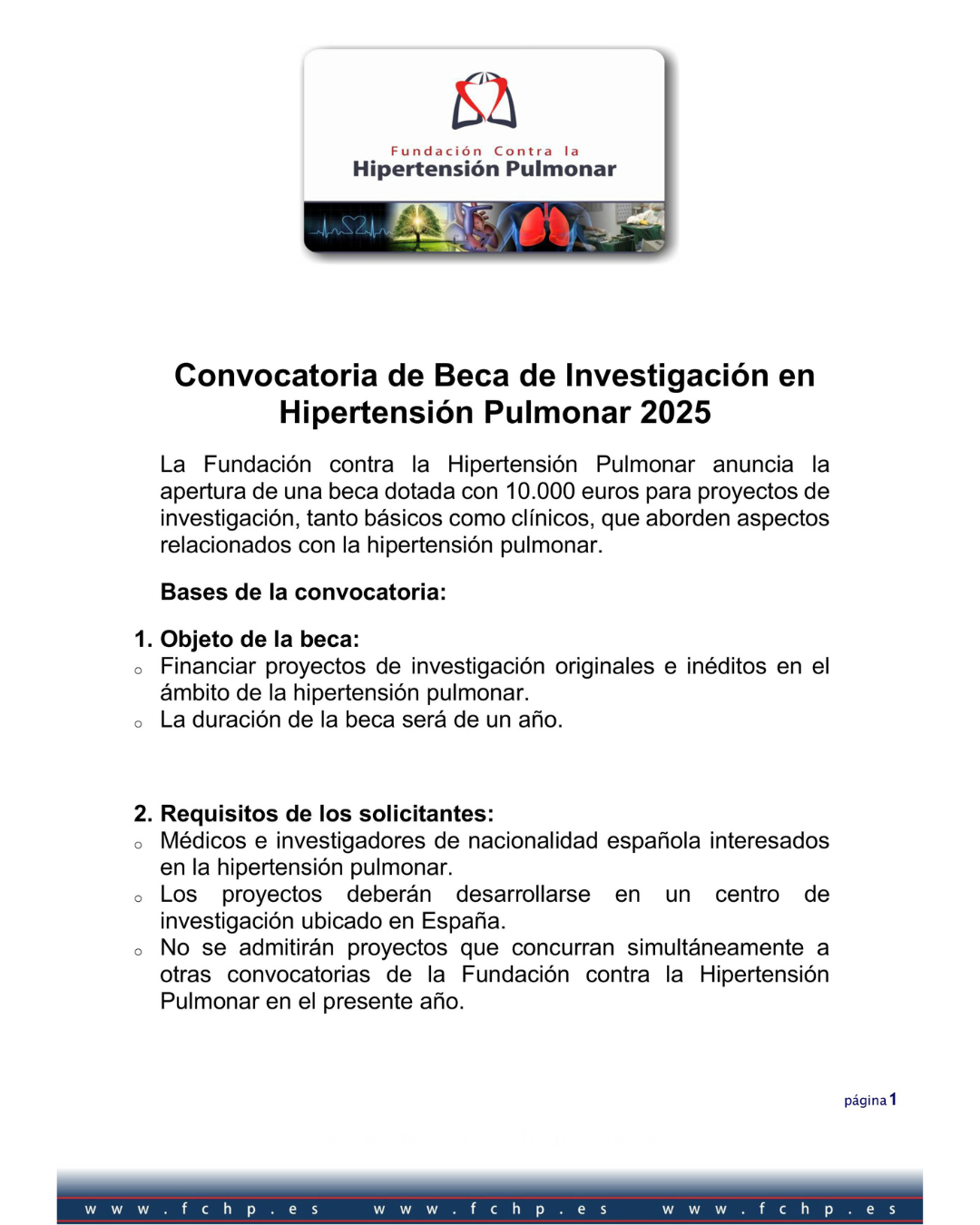 Convocatoria Beca General de Investigación en Hipertensión Pulmonar 2025_Fundación contra la Hipertensión Pulmonar